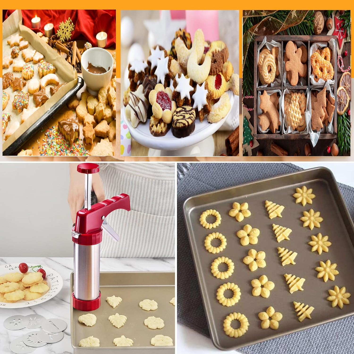 - 【High-Quality Cookie Press】The Cookie Press has unique durability,amazing effects and reusable characteristics.All the materials used in the cookie press gun are tasteless and durable,so it is absolutely safe for you and your family!The cookie press for baking also comes with an exclusive recipe,which is the best choice for Christmas.
