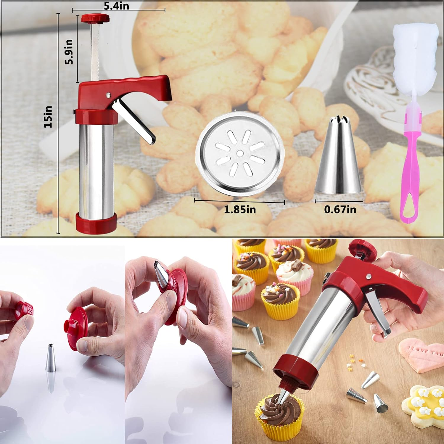 5.The stainless steel cookie gun has an ergonomic design that will give you a strong and comfortable grip so you can use it with ease.