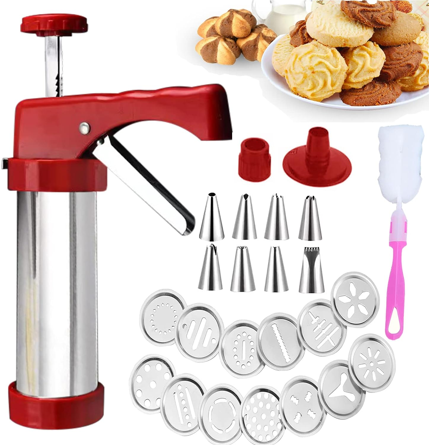 Cookie Press,Classic Stainless Steel Spritz Cookie Press for Baking,Cookie Press Gun,Featuring 13 Decorative Stencil Discs and 8 Icing Tips,Deluxe Cookie Maker